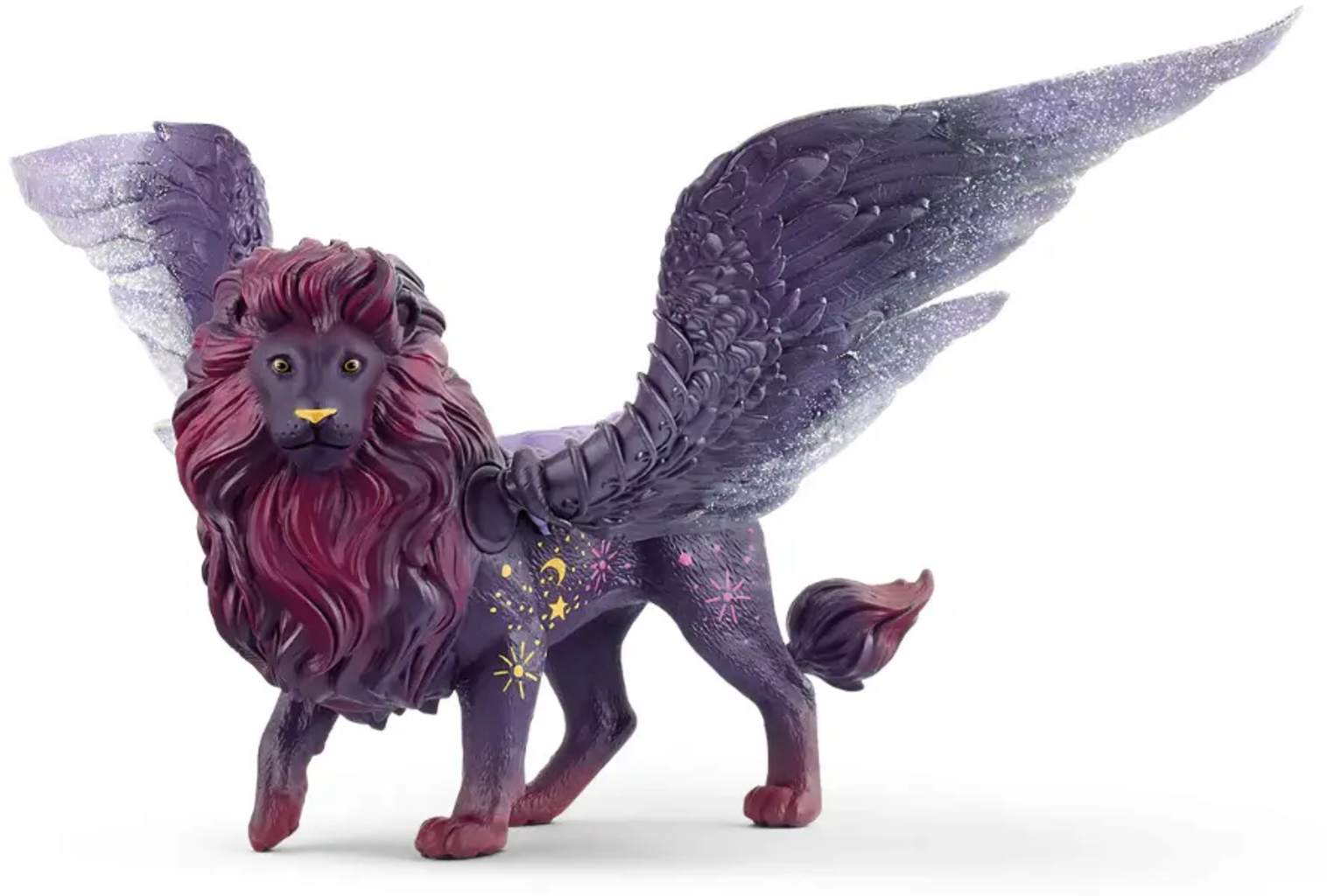 Det majestätiska månlejonet från BAYALA® vakar över natten. Med sin mörka päls, lila och guldfärgade stjärnor och glittrande nos flyger det graciöst genom himlen. Dess kraftfulla vingar gör att det kan sväva högt, och tack vare sina lysande krafter vägleder det sina vänner genom mörkret. En perfekt följeslagare för magiska äventyr.