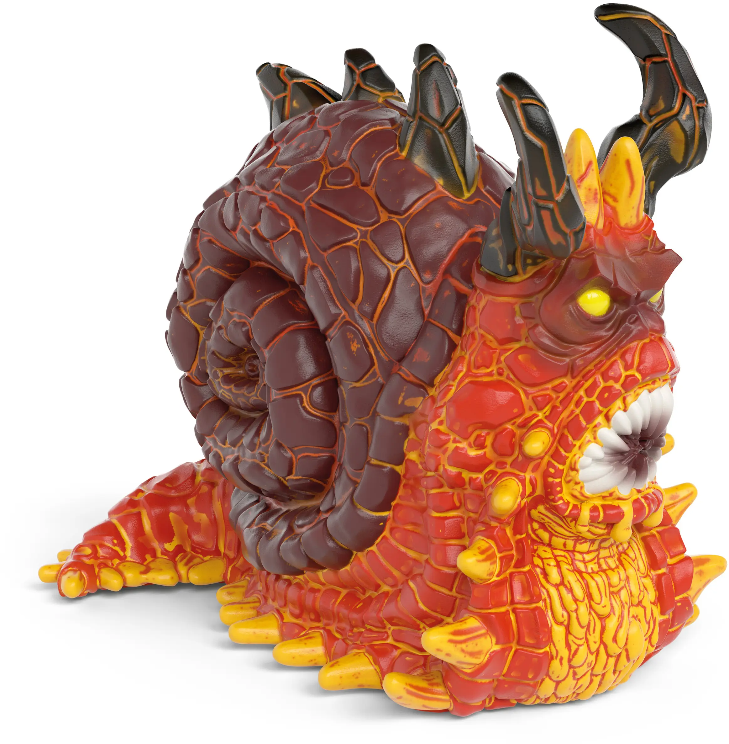 Långsam men farlig - Lavasnigeln är en av de listigaste varelserna i Eldrador®s lavavärld. Dess glödande gula ögon och taggiga skal gör den till en fruktad motståndare. I strid drar den sig blixtsnabbt tillbaka in i sitt eldiga skal för att avvärja attacker. Så snart fienden vänder sig bort rusar den ut och biter skoningslöst - en strategi som har överraskat många motståndare!