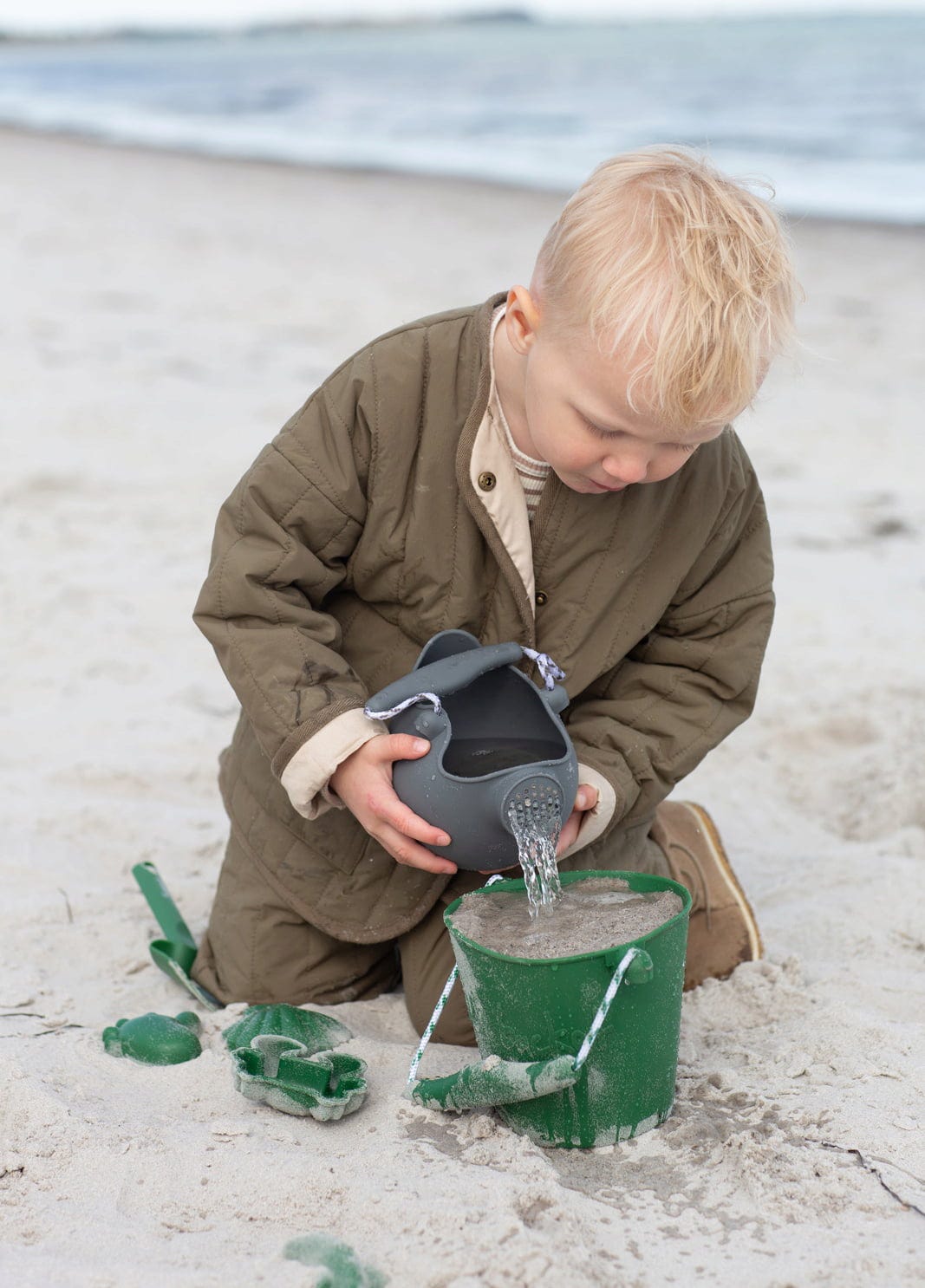 Med denna bedårande vattenkanna kan små trädgårdsmästare vattna sina favoritväxter, transportera sand eller till och med plaska runt i badkaret. Tack vare silikonet kan vattenkannan fällas ihop kompakt så att den får plats i vilket bagage som helst. Eftersom handtaget är fastsatt i vattenkannan med ett rep, balanserar vattenkannans vikt när du går, så inget spills.