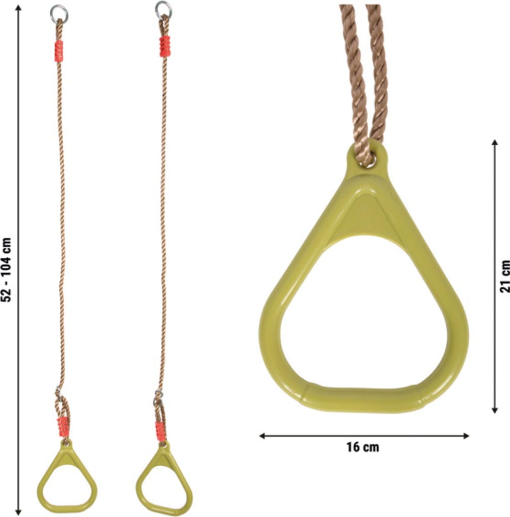 Gymnastikringarna "Sky Climbers" inbjuder till spännande klätter- och gungupplevelser. Stabila, väderbeständiga och höjdjusterbara – perfekta för inomhus- och utomhusbruk. De främjar lekfullt styrka, balans och rytmkänsla hos barn och är även roliga för vuxna.
