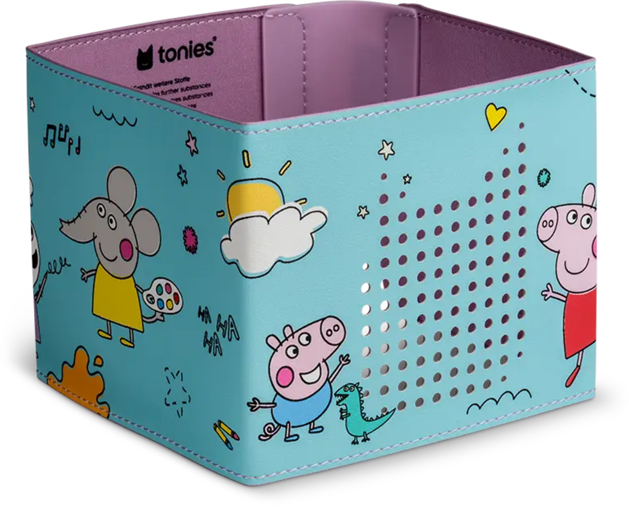 Gör din Toniebox 2 till ett verkligt unikt föremål med detta kärleksfullt designade Peppa Pig-överdrag. Överdraget är otroligt enkelt att sätta på och sitter säkert på plats, även under lek. Tack vare exakta utskärningar förblir ljudet kristallklart och rent. Det barnvänliga materialet är robust och lämpligt för små händer från ett år. Detta gör det enkelt att kombinera individuell stil med perfekt funktionalitet.