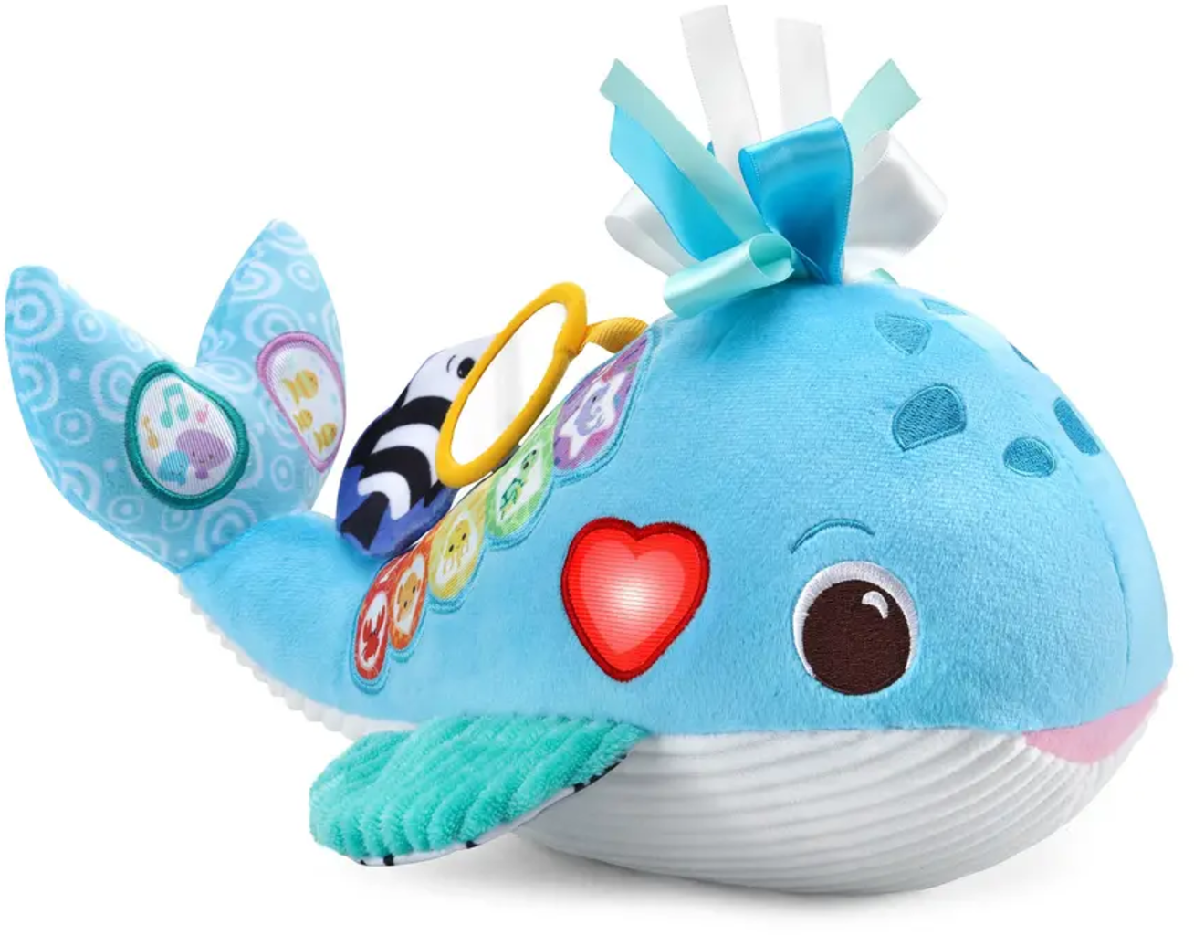 Den musikaliska plyschvalen förvandlar mysstunden till en glädjefylld lärandeupplevelse! Regnbågsfärgade tangenter och olika tygelement stimulerar sinnena, medan musik, fraser och naturljud lekfullt ackompanjerar barn.
