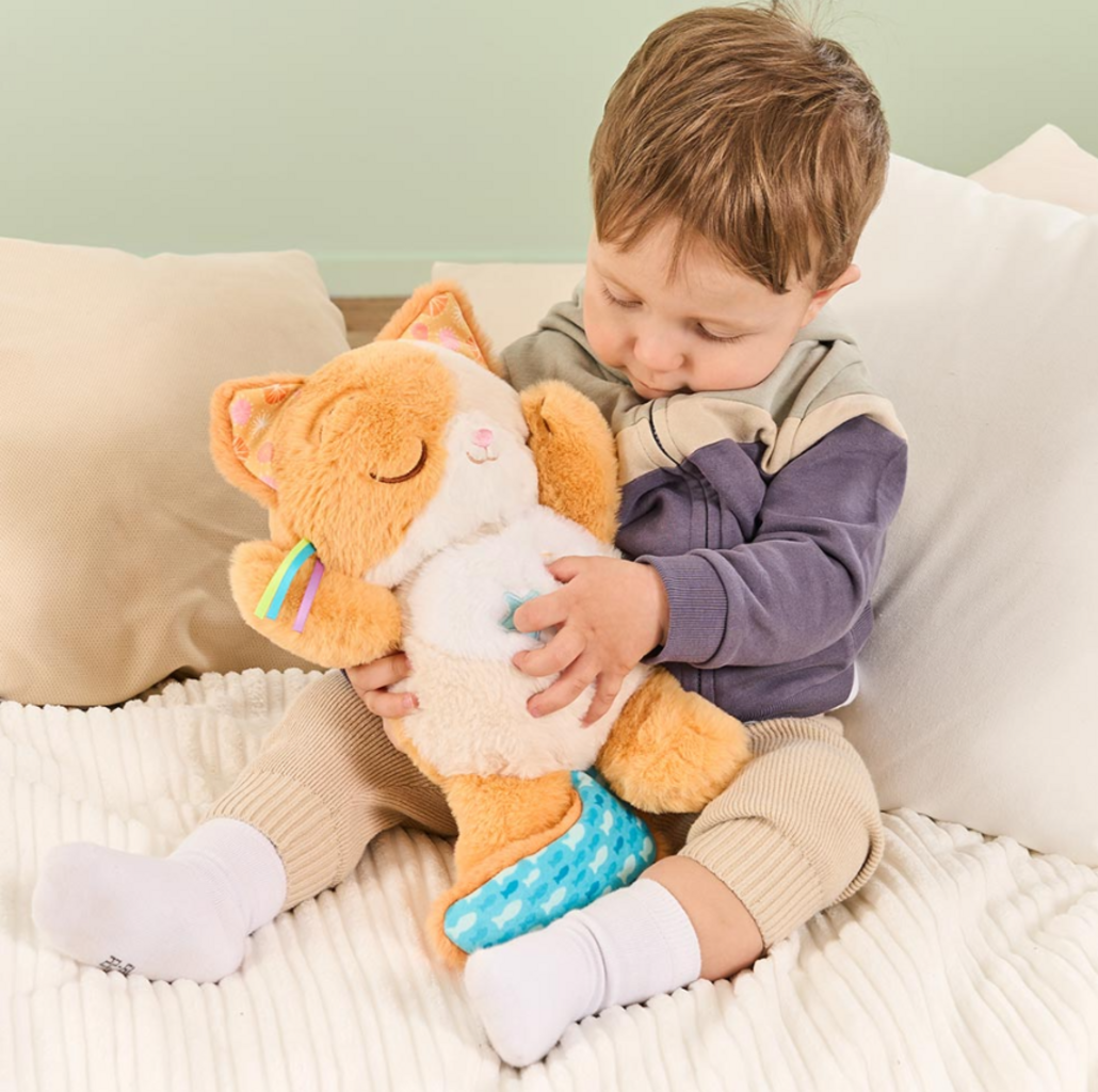 Den sömniga kattungen vaggar försiktigt små bebisar till sömns. Med lysande ljus, lugnande musik och mjuka rörelser skapar den mysiga gosstunder och söta drömmar. Perfekt för lugna stunder och första gosäventyr.