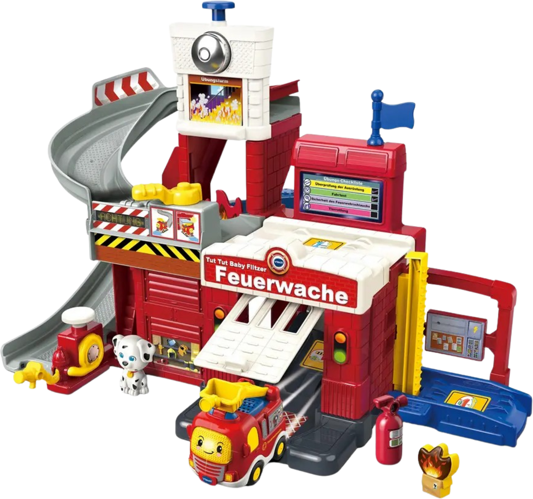 Med brandstationen blir små hjältar lekfullt riktiga räddare! Sjösätta upp racerbilar, släcka bränder, flytta fordon – allt detta främjar motorik, rollspel och fantasi.